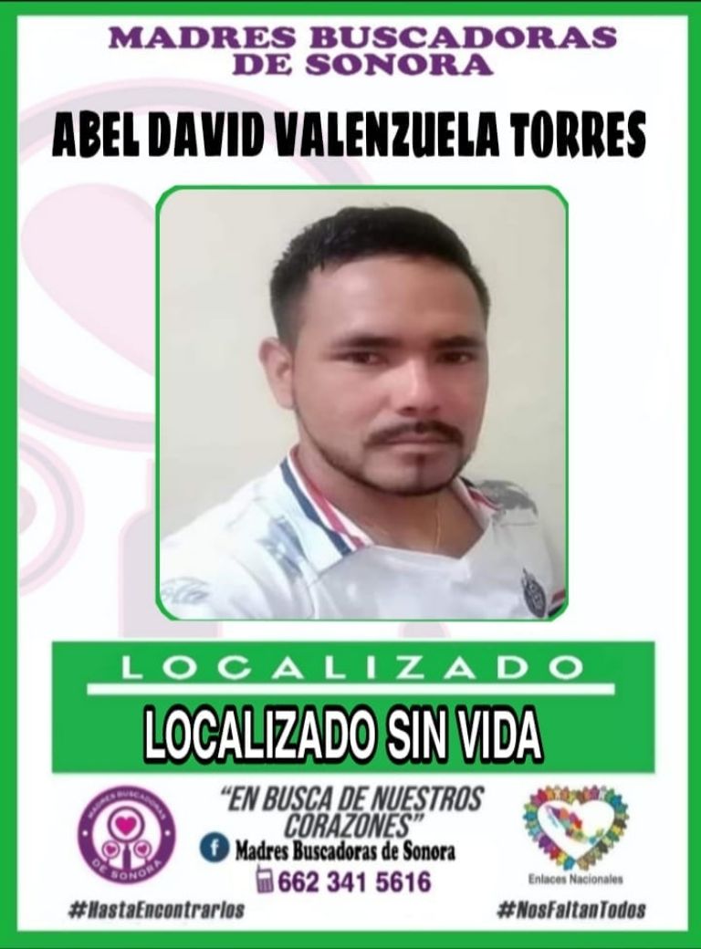 Caborca, Sonora.- Tras varios meses en los que la familia de Abel David Valenzuela Torres no supo nada sobre su paradero, el pasado domingo 12 de septiembre se informó que sus restos fueron localizados en su natal Caborca, Sonora.