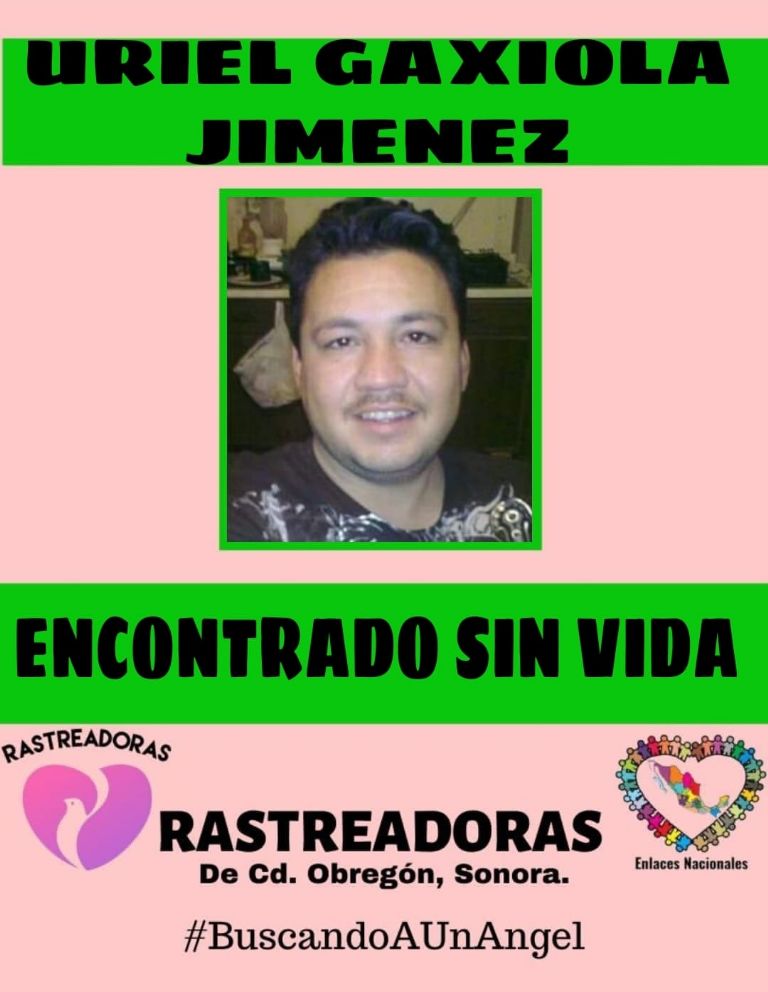 Ciudad Obregón, Sonora.- El colectivo Rastreadoras de Ciudad Obregón confirmó que el cuerpo sin vida de Marcos Uriel Gaxiola Jiménez fue hallado en el municipio de Cajeme, luego de su desaparición en el ejido Cuauhtémoc, también llamado Campo 5.