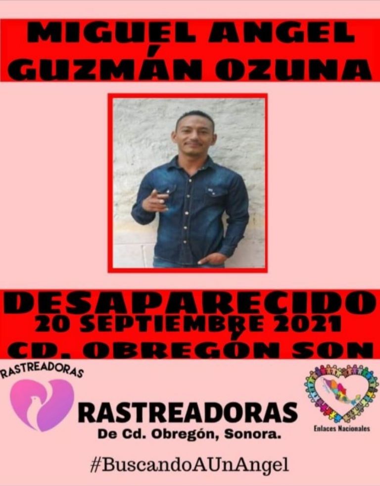 Ciudad Obregón, Sonora.- Este miércoles, el colectivo Rastreadoras de Ciudad Obregón informó sobre la desaparición de Miguel Ángel Guzmán Ozuna en Ciudad Obregón, Sonora de quien no se sabe nada desde hace un par de días.