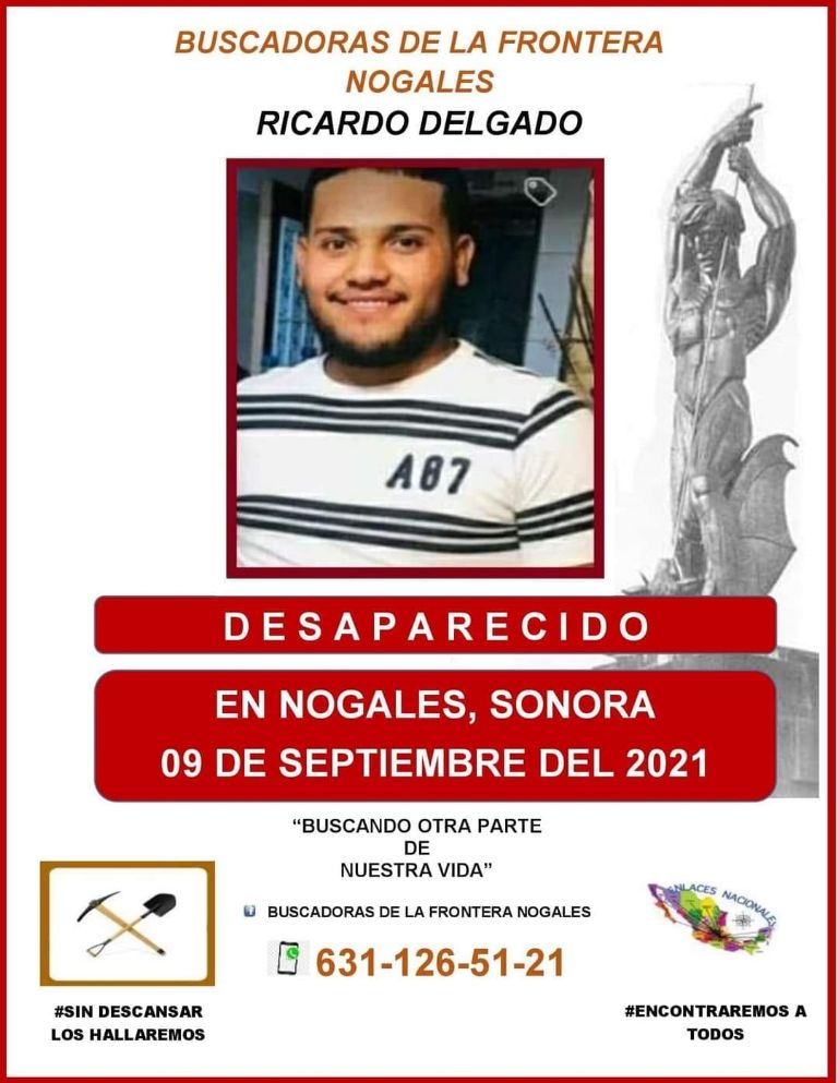 Nogales, Sonora.- El colectivo Buscadoras de la Frontera Nogales reportó la desaparición del joven Ricardo Delgado en Nogales, Sonora y solicitó el apoyo de la ciudadanía para dar con su paradero ya que su familia se encuentra muy angustiada.