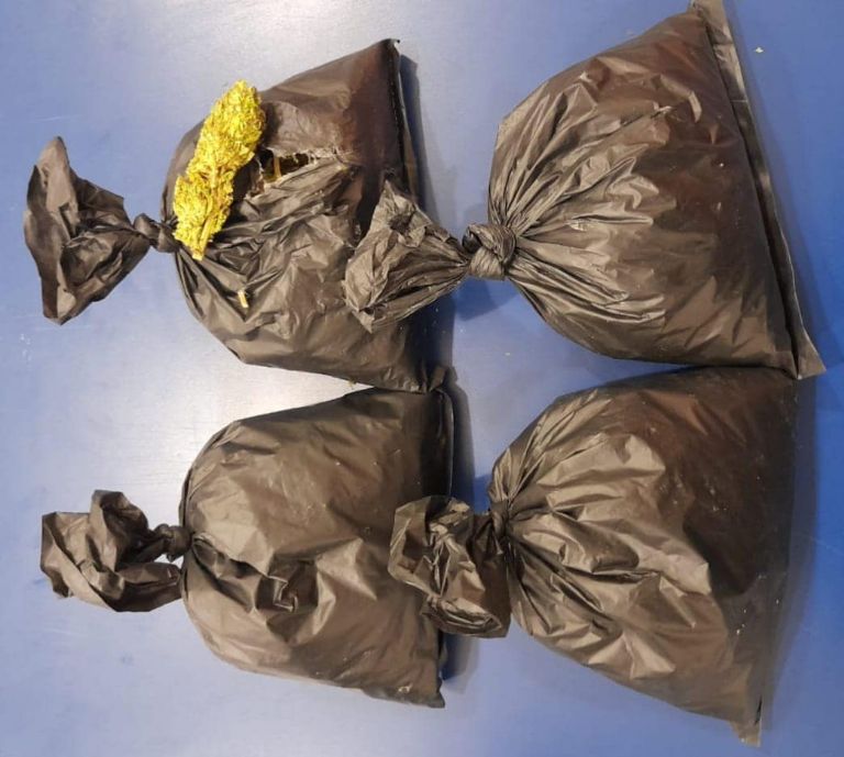 Las personas tripulaban una motocicleta al momento de ser sorprendidos por la Policía. Durante la inspección los sujetos tenían en su posesión cuatro bolsas que contenían la mencionada hierba verde, al parecer marihuana.