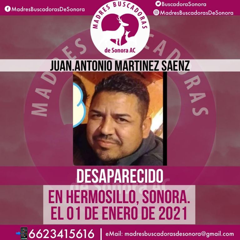 Hermosillo, Sonora.- Juan Antonio Martínez Sáenz se encuentra en calidad de desaparecido en Hermosillo, Sonora, motivo por el que el colectivo Madres Buscadoras de Sonora pide la ayuda de la ciudadanía para localizarlo.