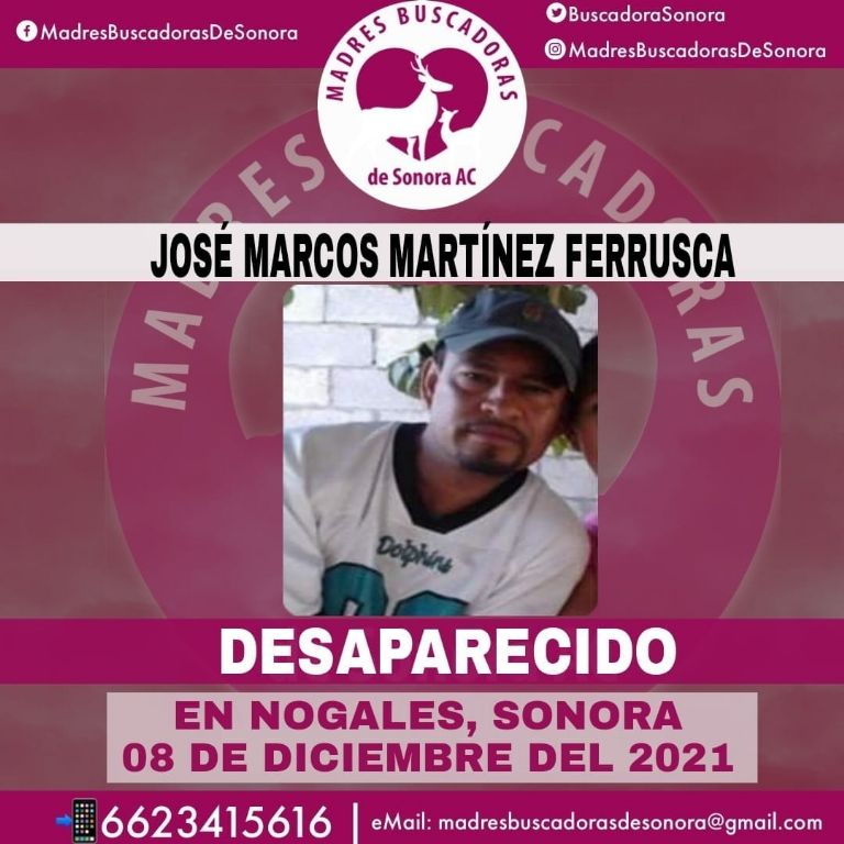 Así lo informó el colectivo Madres Buscadoras de Sonora, quien a través de su cuenta de Facebook indicó que la última que se supo algo de José Marcos fue el miércoles 8 de diciembre de 2021.