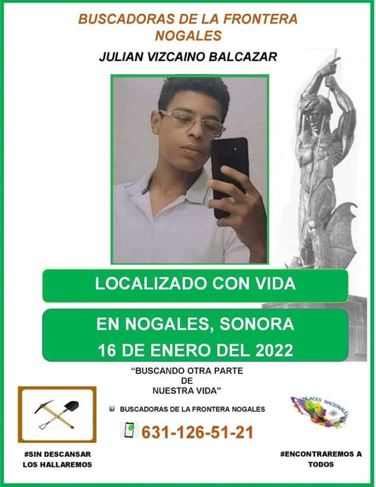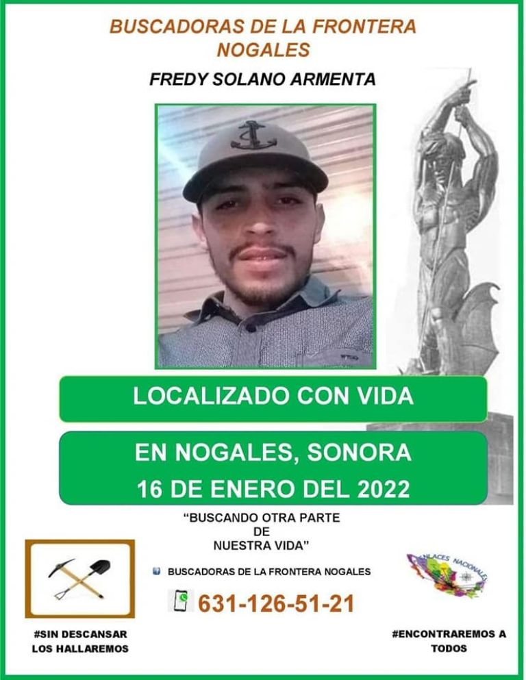 Nogales, Sonora.- El colectivo Buscadoras de la Frontera Nogales reveló este fin de semana que dos hombres que se encontraban en calidad de desaparecidos en Nogales, Sonora, fueron encontrados con vida.