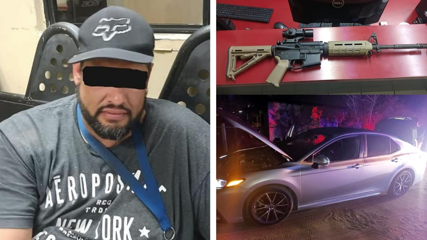 San Luis Río Colorado, Sonora.- La Dirección de Seguridad Pública Municipal de San Luis Río Colorado informó que realizó el arresto de un hombre que transportaba un rifle de asalto en el maletero de un automóvil.