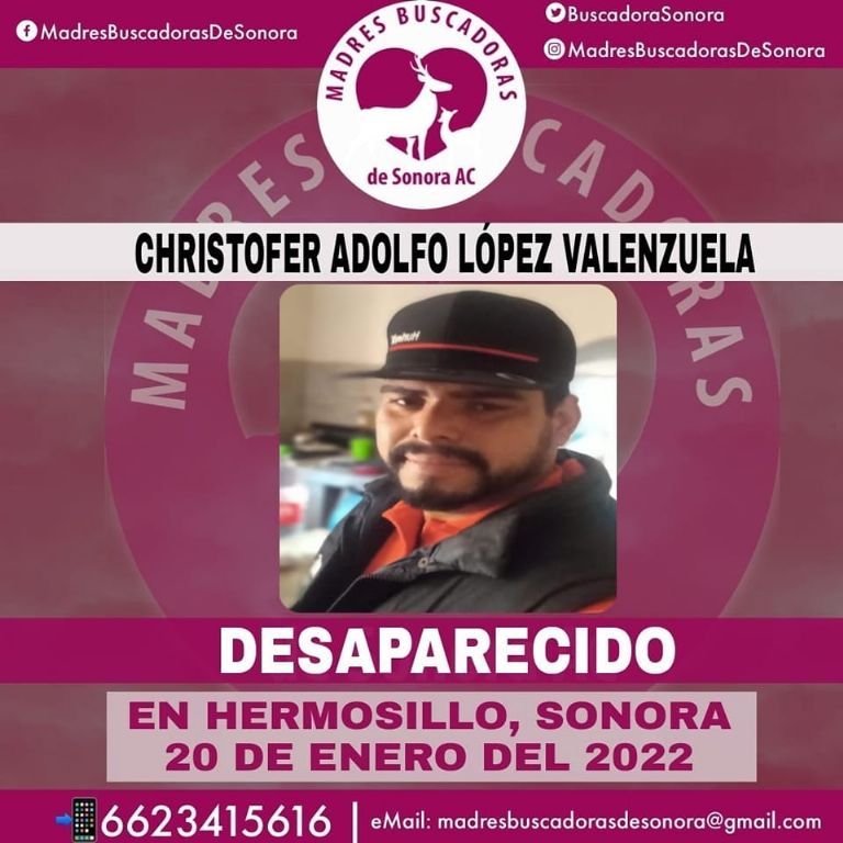 Hermosillo, Sonora.- El colectivo Madres Buscadoras de Sonora solicita la ayuda de la ciudadanía para encontrar a Christofer Adolfo López Valenzuela, quien se encuentra en calidad de desaparecido desde hace varios días en Hermosillo.