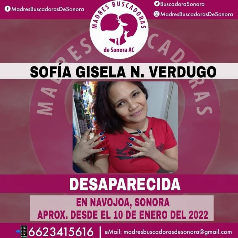 Por medio de redes sociales, el colectivo Madres Buscadoras de Sonora compartió la ficha de búsqueda de la extraviada y sin dar mayores detalles sobre el caso, indicó que la última vez que se supo algo de ella fue el lunes 10 de enero del año en curso.