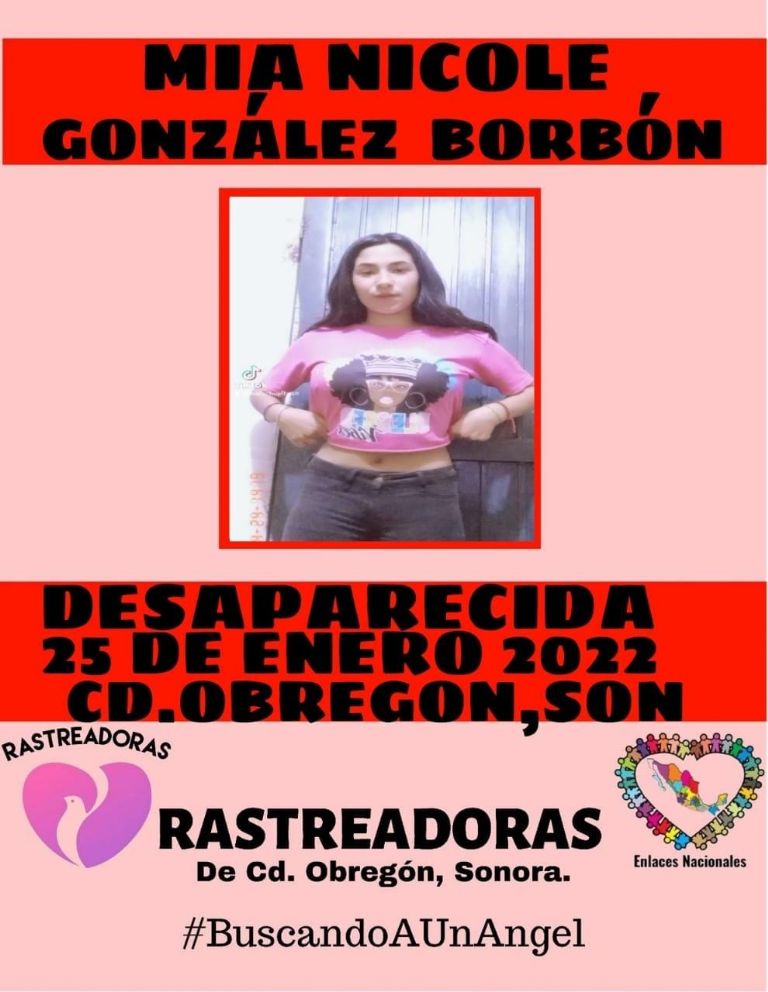 Ciudad Obregón, Sonora.- El colectivo Rastreadoras de Ciudad Obregón infirmó sobre la desaparición en Ciudad Obregón de la menor Mía Nicole González Borbón y solicita la ayuda de la ciudadanía para su localización.