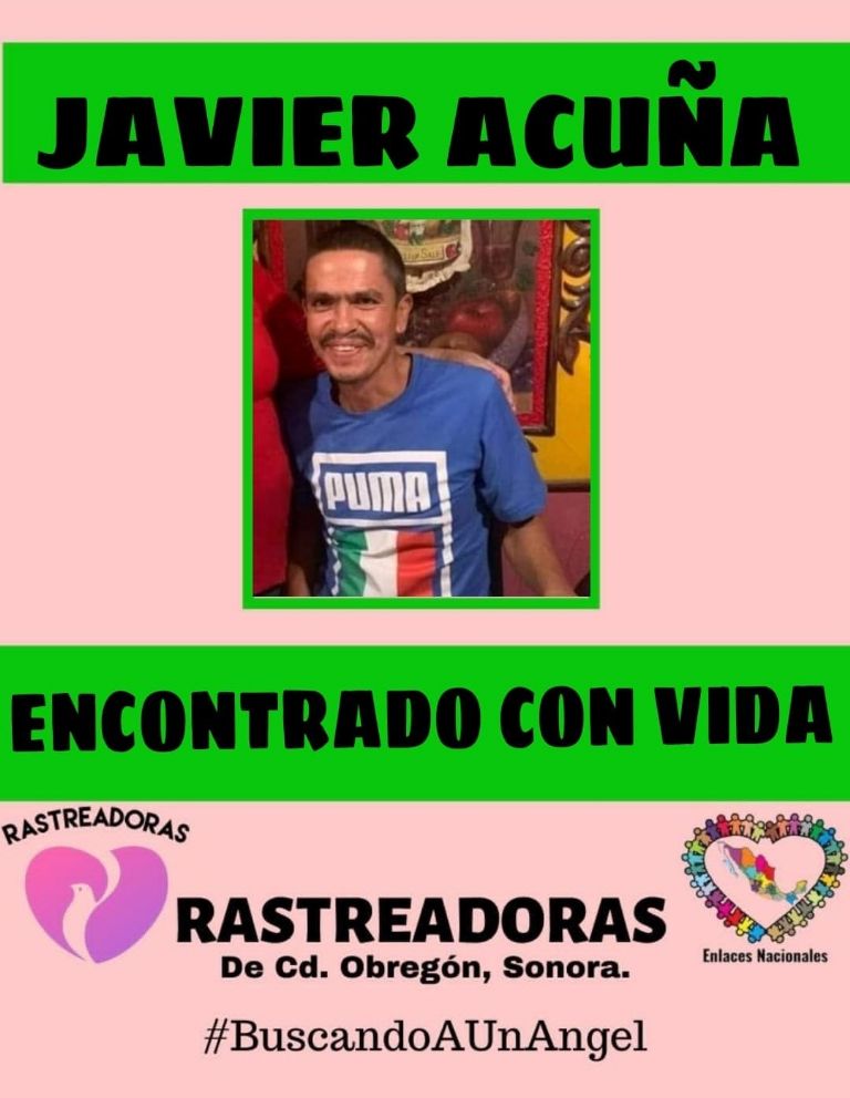Hermosillo, Sonora.- El colectivo Rastreadoras de Ciudad Obregón reveló que Francisco Javier Acuña Miranda fue localizado sin vida, luego de que fuera reportado como desaparecido en Navojoa, Sonora.