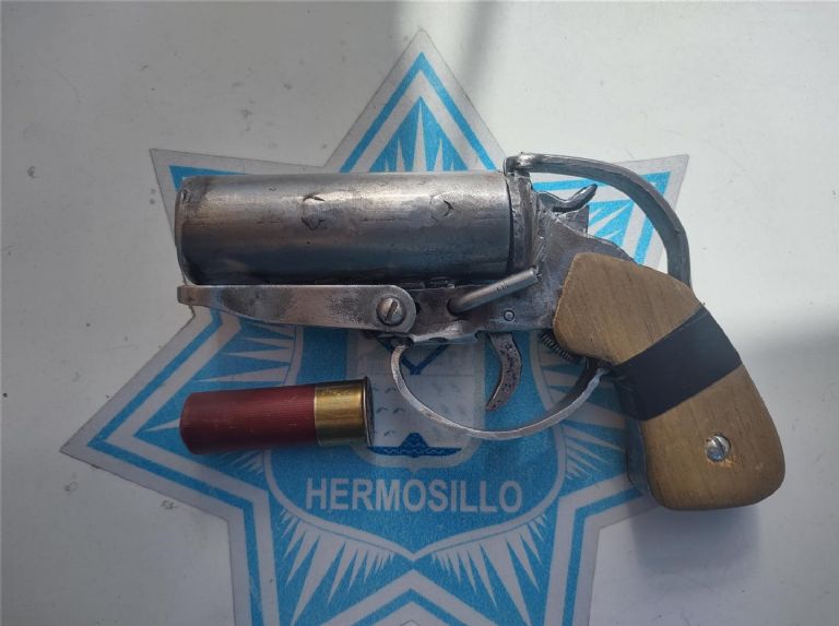 Hermosillo, Sonora.- Agentes del Grupo Operativo Especial (GOE) capturaron a dos hombres en posesión de una pistola hechiza, cuando viajaban en un vehículo sobre las calles de la colonia Solidaridad, al norte de Hermosillo.