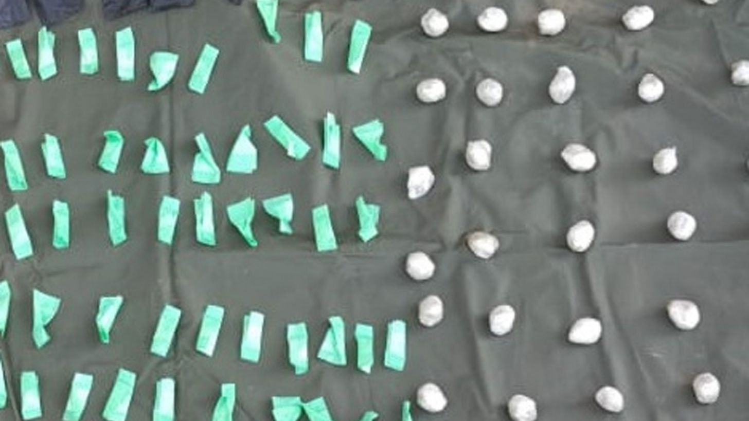 En total, fueron 100 paquetes de polvo blanco, 68 en piedra blanca, 41 con sustancia granulada y 45 con vegetal verde, con las características del narcótico.