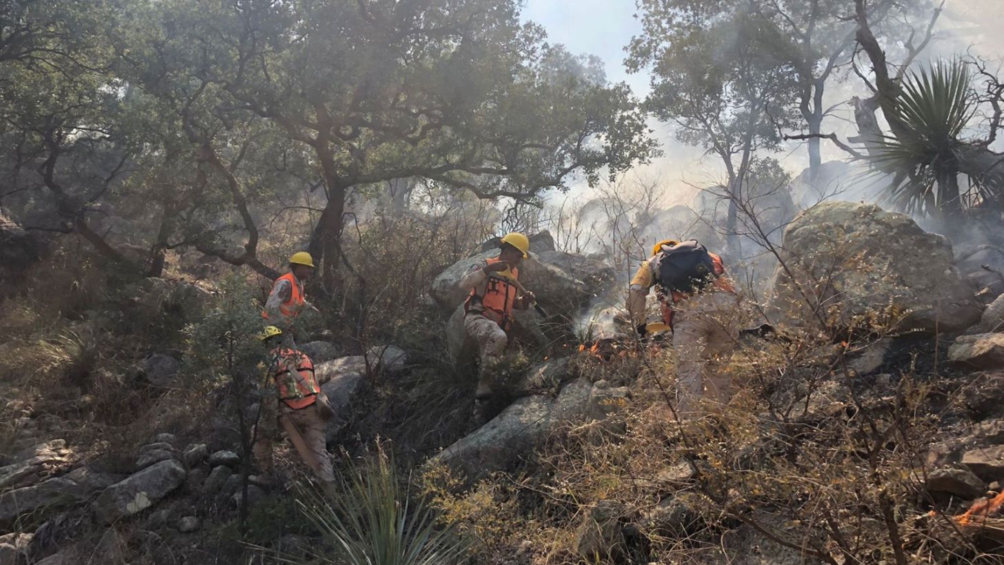 Son 50 brigadistas del 73 Batallón de Infantería de la Secretaría de la Defensa Nacional (Sedena) los participan en el combate del incendio, además de 40 de la Guardia Nacional, cuatro brigadas con un total de 25 elementos especialistas de combate a incendios forestales, 20 elementos de brigadas ejidales y cinco brigadistas de Protección Civil estatal, para un total de 140 en todo el operativo.