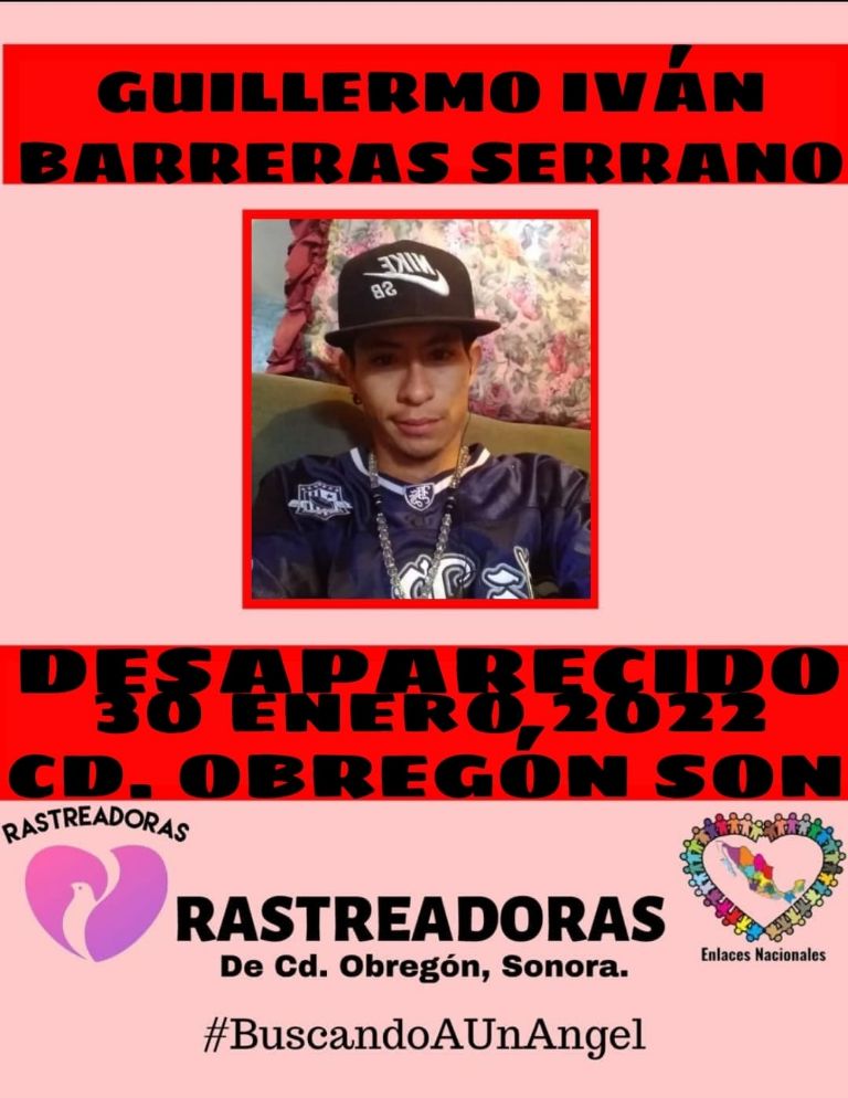 Ciudad Obregón, Sonora.- Desde hace varios días que nada se sabe sobre el paradero de Guillermo Iván Barrera Serrano, joven que se encuentra desaparecido en Ciudad Obregón y sus familiares piden ayuda para localizarlo.