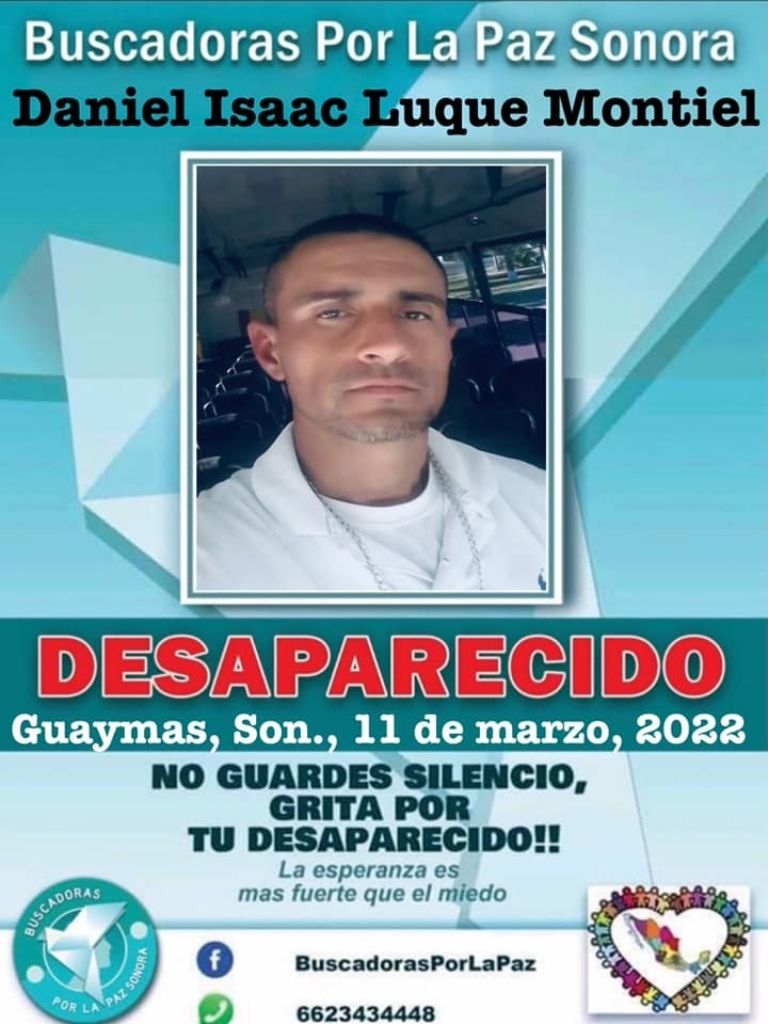 Guaymas, Sonora.- El colectivo Buscadoras por la Paz informó el pasado fin de semana sobre la repentina desaparición de Daniel Isaac Luque Montiel en Guaymas, Sonora y solicitó el apoyo la comunidad para encontrarlo sano y salvo.