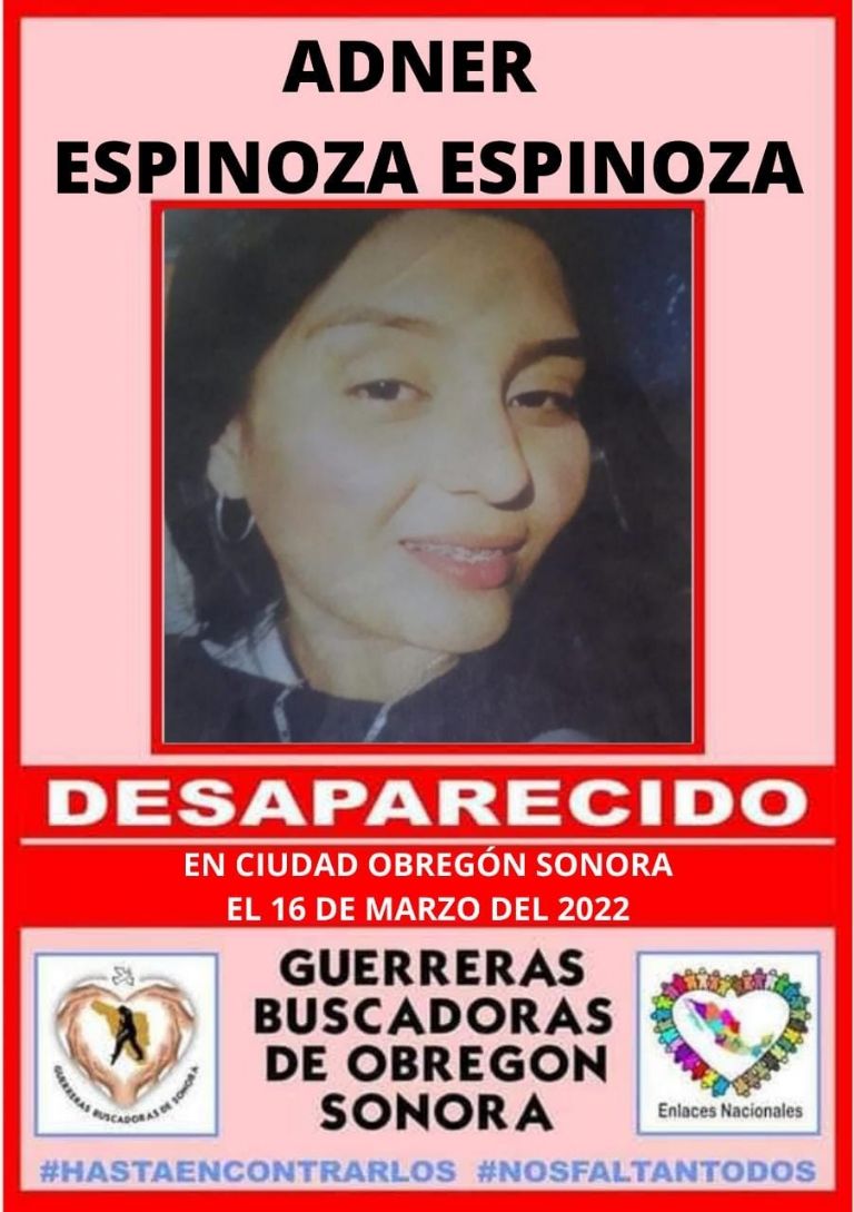 Ciudad Obregón, Sonora.- Una familia de Ciudad Obregón solicita el apoyo de la ciudadanía para dar con el paradero de Adner Espinoza Espinoza, joven que se encuentra en calidad de desaparecida desde la semana pasada.