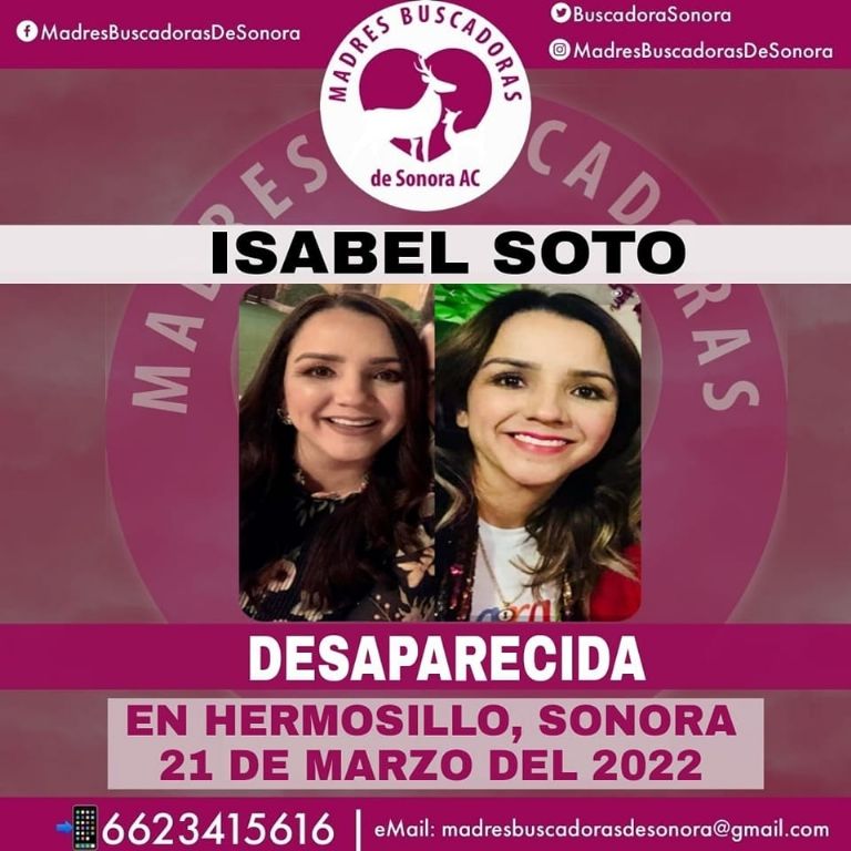 Por su parte, el colectivo Madres Buscadoras de Sonora se sumó a la causa publicando la ficha de búsqueda de la extraviada y pidiendo a las personas llamar al 662 341 5616 para brindar información que ayude a localizarla.