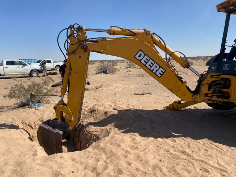Con ayuda de maquinaria se trabajó en un área desértica ubicado en el camino de terracería que conduce del canal La Mesa a la carretera libramiento San Luis Río Colorado - Golfo de Santa Clara, cerca de 300 metros al sureste del vertedero municipal.