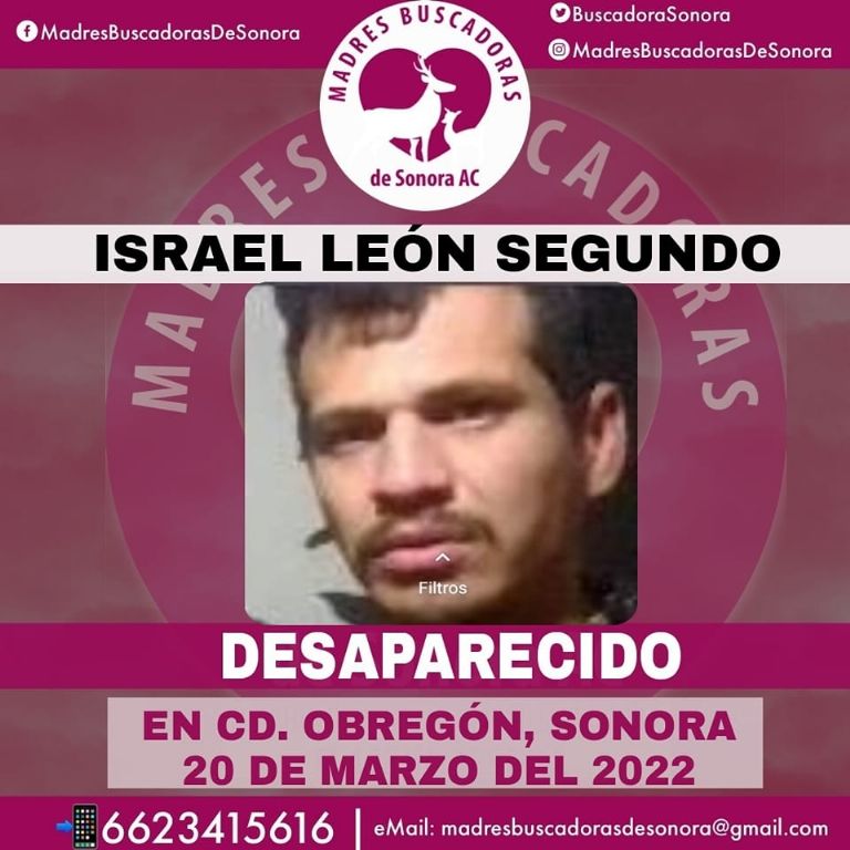 Ciudad Obregón, Sonora.- El colectivo Madres Buscadoras de Sonora pide la ayuda de la comunidad sonorense para encontrar a Israel León Segundo, quien se encuentra desaparecido desde hace varias horas en Ciudad Obregón, Sonora.