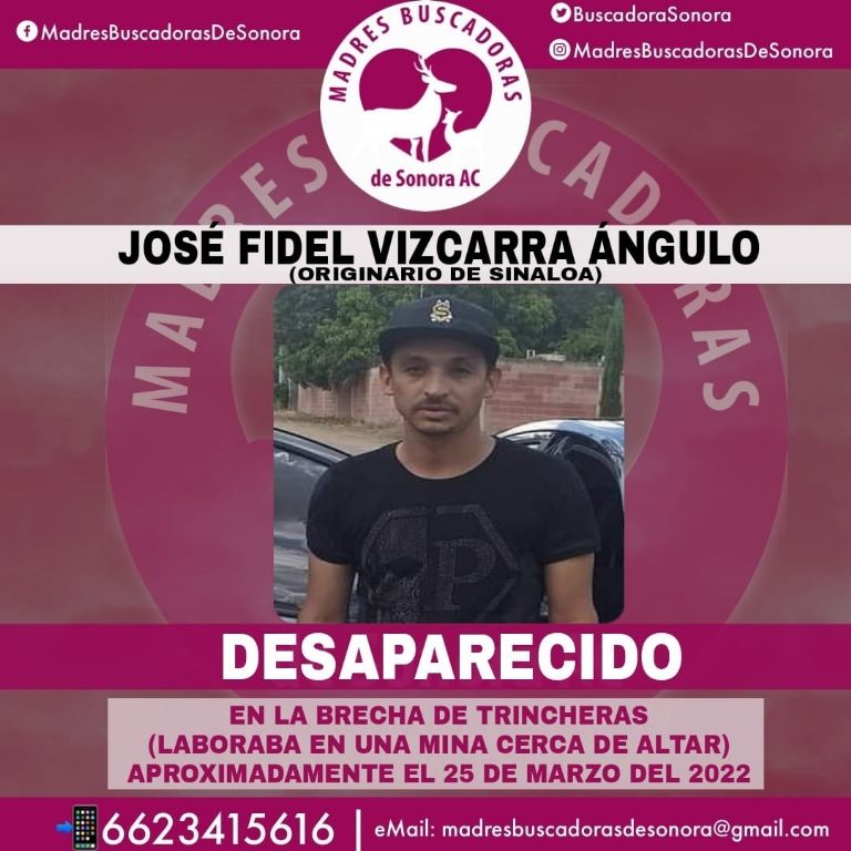 En palabras de sus familiares, la última vez que supieron algo de él fue cerca del 25 de marzo de 2022. Aquel día salió de su domicilio rumbo a su trabajo en una mina del municipio de Altar, pero desde ese momento se perdió todo contacto con él.