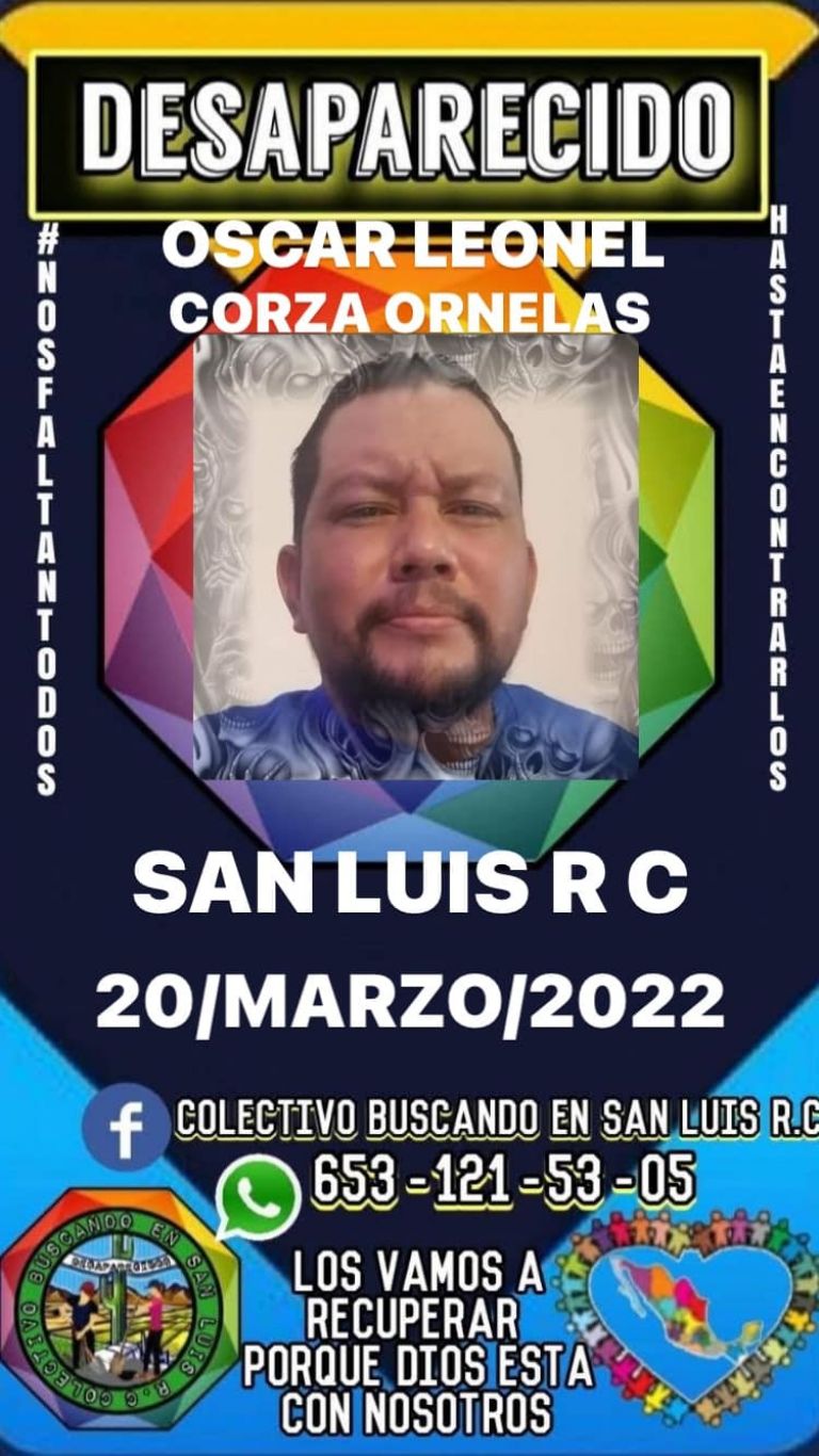Por su parte, el colectivo Buscando en San Luis R.C. publicó su ficha de búsqueda y puso disposición el número de teléfono 653 121 53 05 para que la gente llame y aporte cualquier información que ayude a dar con su paradero.