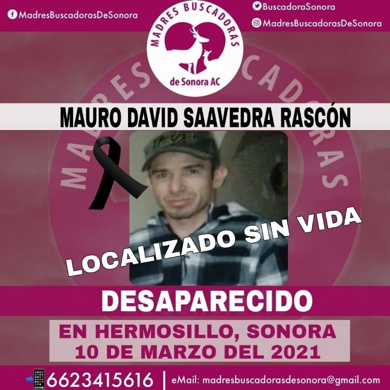 Este fin de semana, el colectivo Madres Buscadoras de Sonora confirmó en redes sociales que el cuerpo sin vida del extraviado fue localizado el pasado mes de noviembre, pero fue hasta ahora que pudo ser identificado tras pruebas de ADN.