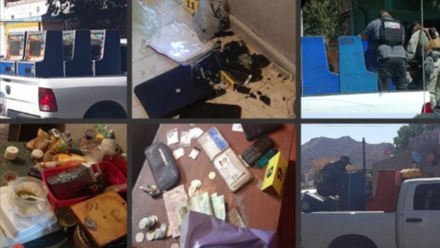 Guaymas, Sonora.- En atención a denuncias anónimas por probable venta de narcótico en Guaymas, la Fiscalía de Sonora coordinó una acción táctica de cateo con elementos Conase, AMIC y Semar, donde se aseguró droga, 16 máquinas tragamonedas de azar y otros indicios.