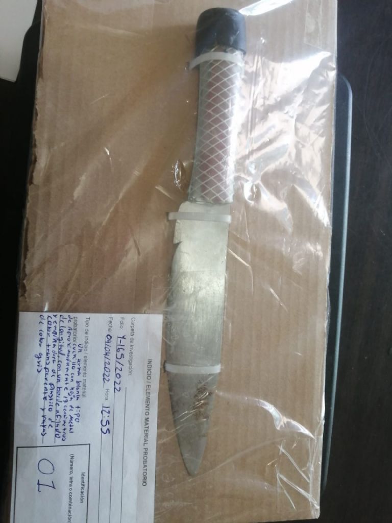 La víctima narró a los agentes que fue agredido por un hombre de nombre Mariano, de 56 años de edad, quien fue interceptado minutos después y al realizarle una revisión física se le encontró un arma tipo cuchillo.