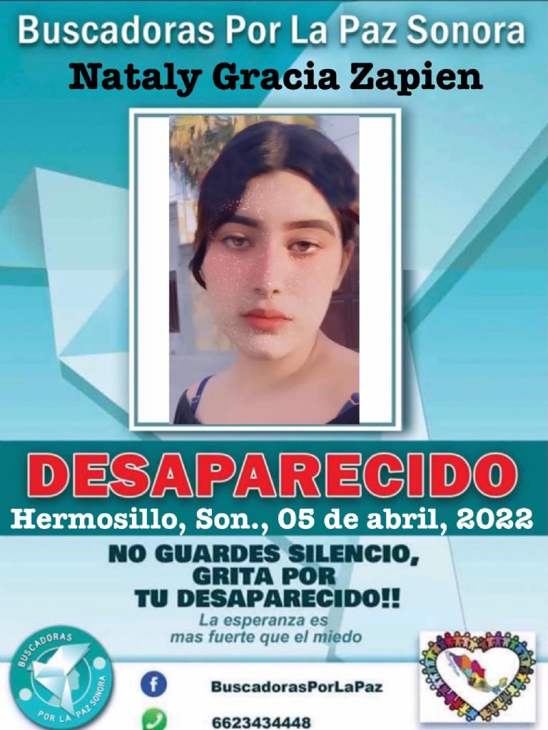 Por su lado, el colectivo Buscadoras por la Paz compartió la ficha de búsqueda de adolescente y puso disposición su número 662 343 4448 para que la gente aporte cualquier información que ayude a dar con su paradero.