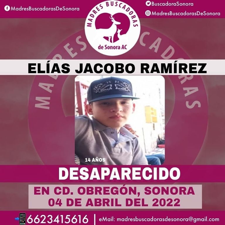 El colectivo Madres Buscadoras de Sonora publicó en su cuenta de Facebook la ficha de búsqueda del extraviado, donde indica que fue visto por última vez el lunes 4 de abril de 2022, cuando salió de casa en Ciudad Obregón, Sonora.