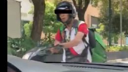 Sin pensarlo, el agresor abre la puerta del repartidor y casi entra al vehículo para lanzarle varios insultos y amenazas; no obstante, no acciona el arma, ya que solo la usó para asustar al conductor por alguna cuestión de la que no se ha tenido conocimiento.