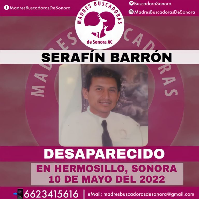 En el caso de Serafín Barrón, quien tiene 46 años de edad, se sabe que su desaparición ocurrió el pasado martes 10 mayo, en pleno Día de las Madres. Ese día salió de su domicilio como de costumbre, sin embargo, ya no regresó y se perdió todo contacto con él.