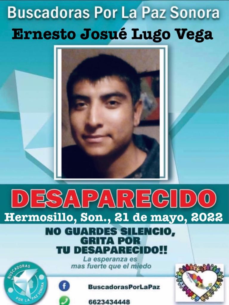 De la misma manera, Buscadoras por la Paz Sonora publicó la ficha de búsqueda de Ernesto Josué y solicitó a la comunidad compartirla. Además, puso disposición su número de teléfono 662 343 4448 para que la gente se comunique y aporte cualquier información que ayude a dar con su paradero.