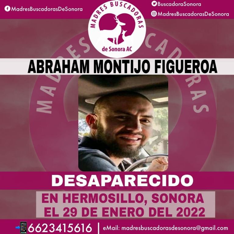 En el caso de Abraham Montijo Figueroa, la agrupación Madres Buscadoras de Sonora utilizó sus redes sociales para denunciar el extravío del hombre en Hermosillo, ciudad en la que se encontraba antes de perder todo contacto con su familia, misma que se encuentra muy angustiada al no saber nada de su ubicación desde hace casi 4 meses.