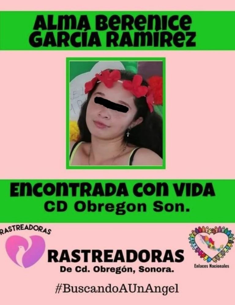 Ciudad Obregón, Sonora.- Sana y a salvo fue localizada la joven Alma Berenice G. R., de 15 años de edad, quien había sido reportada como desaparecida por sus familiares en Ciudad Obregón, Sonora.