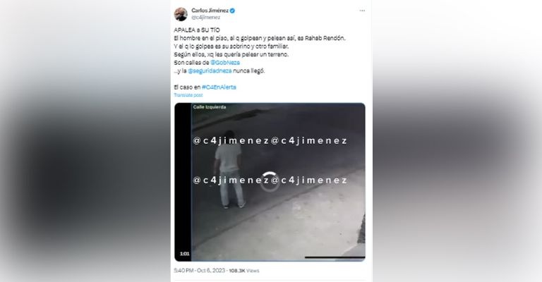 En el clip se puede apreciar como los dos hombres, golpean y pelean a Rahab, una vez en el suelo, lo patena en el cuerpo y la cabeza, cuando de la nada una mujer aparece y los aleja para auxiliar al hombre que terminó con algunas lesiones, sin conocerse si ya interpuso una denuncia ante la Fiscalía General de Justicia del Estado de México (Fgjem) por las heridas causadas pues estas tardan en sanar en más de 15 días.