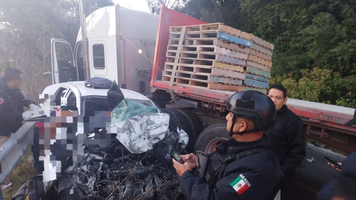 En ese marco, el automóvil tipo taxi quedó destrozado y aplastado por el tráiler que transportaba tarimas, matrícula 10AT7J-Y, cuyo conductor no estaba, al parecer se dio a la fuga. La policía ya resguarda la zona, y se solicitó la presencia de la Fiscalía General de Justicia del Estado de México (FGJEM), cuyos peritos comenzarán con las investigaciones pertinentes y procederán con el levantamiento de los cuatro cuerpos.