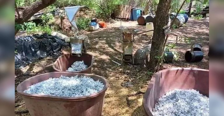 Quiriego, Sonora.- En un operativo por parte del Ejército Mexicano y la Guardia Nacional, se logró el aseguramiento de un narcolaboratorio, esto el municipio de Quiriego, Sonora mismo que quedó completamente desmantelando, tras encontrarse grandes cantidades de metanfetamina en la zona, la cuales eran producidas por grupos criminales, los cuales no fueron ubicados en la zona, por lo que no se logró aprehensión alguna.