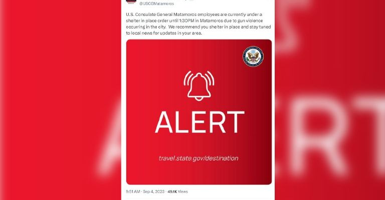 Matamoros, Tamaulipas.- Este lunes 4 de septiembre, en la ciudad de Matamoros, Tamaulipas, el Consulado General de Estados Unidos, informó a su empleado que van a permanecer bajo orden de refugio, esto derivado a la situación de violencia que ha azotado a la demarcación, provocando que las calles sean total inseguras, por las múltiples balaceras que se registran en los alrededores.