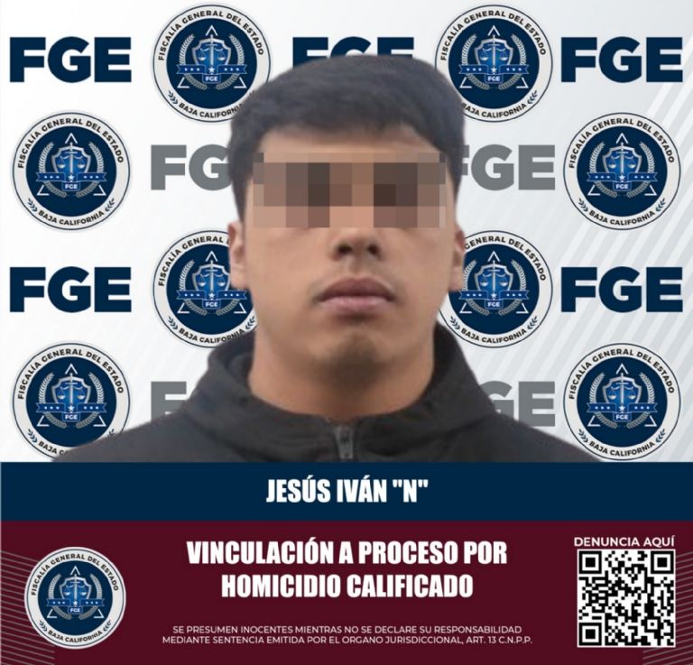 Tijuana, Baja California.- La Fiscalía General del Estado de Baja California comunicó este jueves que un hombre fue detenido y vinculado a proceso penal por el delito de homicidio calificado, y se le impuso prisión preventiva justificada. Se trata de Jesús Iván 'N', quien fue sujetado a proceso luego de que el Ministerio Público acreditó su presunta responsabilidad en el crimen el 11 de diciembre de 2024, en la ciudad de Tijuana.