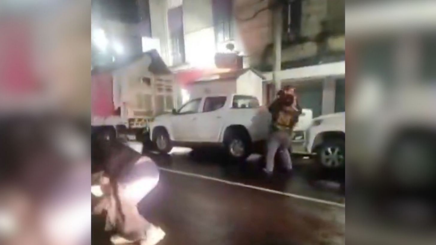 Un fuerte video que circula en redes sociales muestra cómo al menos 15 personas están participando en diferentes peleas en plena vía pública, con el asfalto mojado. El clip fue grabado por una mujer, quien en repetidas ocasiones piden a los presentes que dejen de pelear; también se escucha cómo le pide a un hombre de nombre 'Charly' alejarse del conflicto. Se trata de al menos cuatro peleas diferentes, en las que participaron cinco hombres y algunas mujeres.