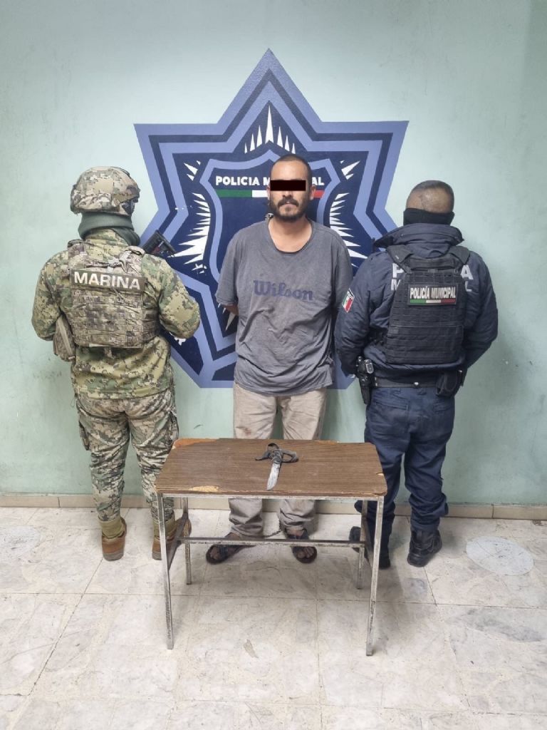 El detenido, identificado como Cecilio Arturo M. A., de 37 años, fue aprehendido tras resistirse a una inspección luego de que fuera avistado en posesión de un arma punzocortante. Durante el patrullaje de vigilancia, los agentes detectaron a un individuo que caminaba solo portando el arma. Al acercarse a él, el sujeto repentinamente atacó a uno de los oficiales municipales, aunque afortunadamente no logró herirlo.