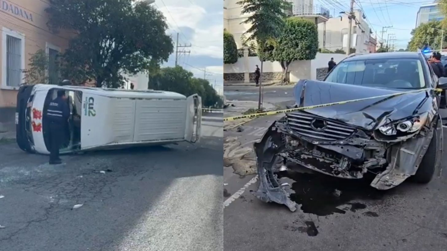 Puebla, Puebla.- Los pasajeros de una camioneta del transporte público de la unidad Ruta S3 tuvieron un abrupto fin de mes luego de terminar involucrados en un accidente, en las calles de la capital de Puebla. De acuerdo con algunos reportes, los primeros en darse cuenta del incidente fueron los peatones, quienes de inmediato se pusieron en contacto con el número de emergencia para denunciar los hechos y solicitar una ambulancia.