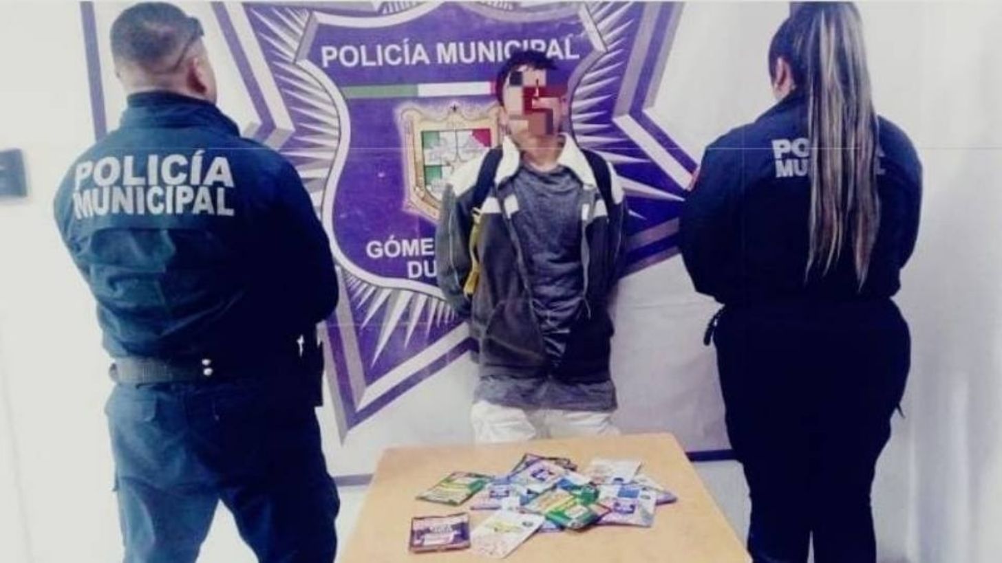 Gómez Palacio, Durango.- En un caso que fue registrado el miércoles 14 de enero de 2026, un hombre identificado como Gerardo Javier 'N.', de 24 años de edad, fue detenido por intentar sustraer múltiples paquetes de atún de una tienda de conveniencia en el municipio de Gómez Palacio, Durango. El arresto fue efectuado por elementos de la Dirección de Seguridad y Protección Ciudadana y puesto a disposición de las autoridades correspondientes.
