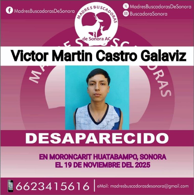 Hasta el momento, se ha logrado confirmar la identidad de una de las víctimas encontradas en el sitio. Se trata del joven Víctor Martín Castro Galaviz, quien contaba con una ficha de búsqueda activa tras haber sido reportado como desaparecido. Según los registros, Castro Galaviz fue visto por última vez el pasado 19 de noviembre de 2025 en la comunidad de Moroncárit, también situada en el municipio de Huatabampo.