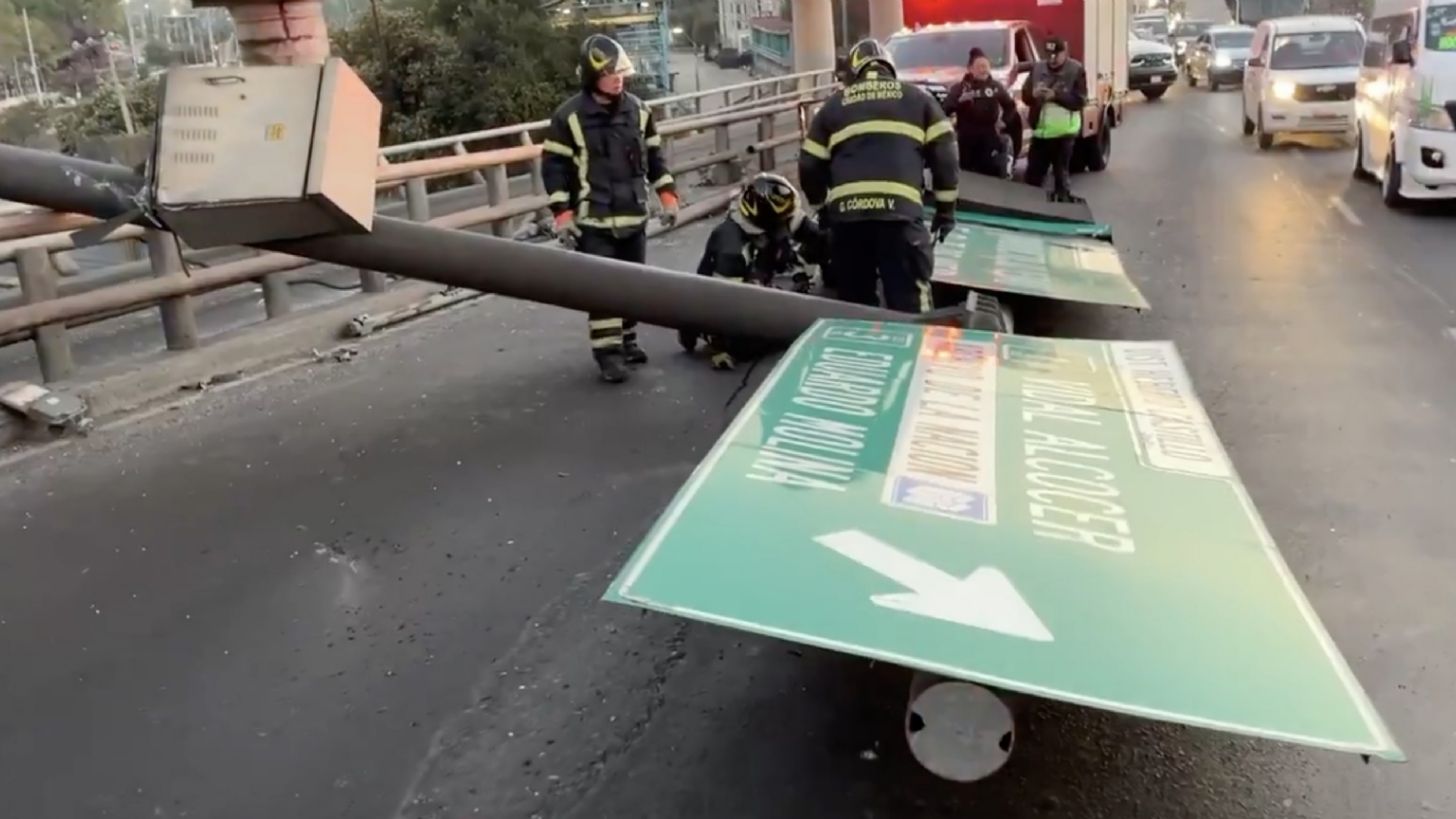 Como consecuencia del impacto, una estructura de gran tamaño colapsó y quedó extendida sobre al menos dos carriles del distribuidor, lo que provocó que se activara el Código Rojo. Al sitio acudieron elementos del Heroico Cuerpo de Bomberos de la Ciudad de México, quienes iniciaron las maniobras para retirar la estructura metálica y liberar la circulación. Las labores se concentraron en asegurar el área, evaluar riesgos y comenzar el retiro del señalamiento dañado.