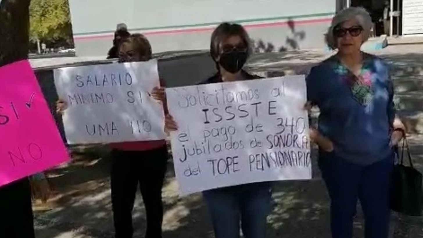 Ciudad Obregón, Sonora.- La mañana de este jueves 18 de marzo, un grupo de jubilados y pensionados del Instituto de Seguro Social al Servicio de Trabajadores del Estado, hizo valer su derecho a la libre manifestación para exigir que se les pague de acuerdo al salario mínimo y no a la Unidad de Medida de Actualización.
