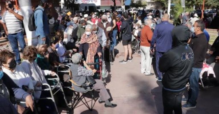 Entre aglomeraciones y quejas de los presentes por la demora y desorganización, (incluso en las las comisarías de Cócorit y Esperanza no se recibió el biológico), el día de hoy arrancó la primer etapa de vacunación contra el Covid-19 en Cajeme. Aunque las autoridades aseguraron que la aplicación de la vacuna daría inicio a las 9:00 horas, el proceso arrancó oficialmente a las 10:11 en la Plaza Lázaro Cárdenas, lo que provocó inconformidad por parte de los adultos mayores presentes, quienes aseguraron haber llegado al lugar desde las 05:00 horas de la mañana.