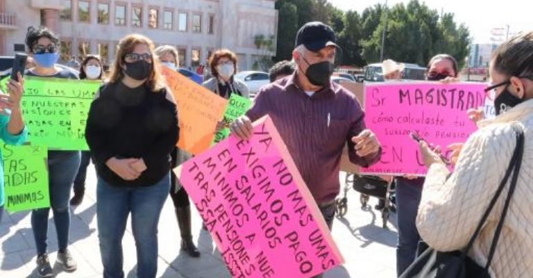 Ciudad Obregón, Sonora.- Luego de que la Suprema Corte de Justicia de la Nación (SCJN), informó sobre su determinación para que los pagos a pensionados se calculen por medio de la Unidad de Medida y Actualización (UMA) y no por salarios mínimos, jubilados del Instituto de Seguridad y Servicios Sociales de los Trabajadores del Estado (Issste), se manifestaron frente al Palacio Municipal.