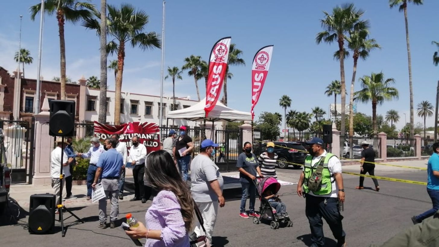 Hermosillo, Sonora.- Maestros sindicalizados del Sindicato de Trabajadores Académicos de la Universidad de Sonora (Staus) se manifiestan para tener un acuerdo con las autoridades de la Universidad de Sonora (Unison), de lo contrario estallaría huelga en medio de la crisis sanitaria por Covid-19.