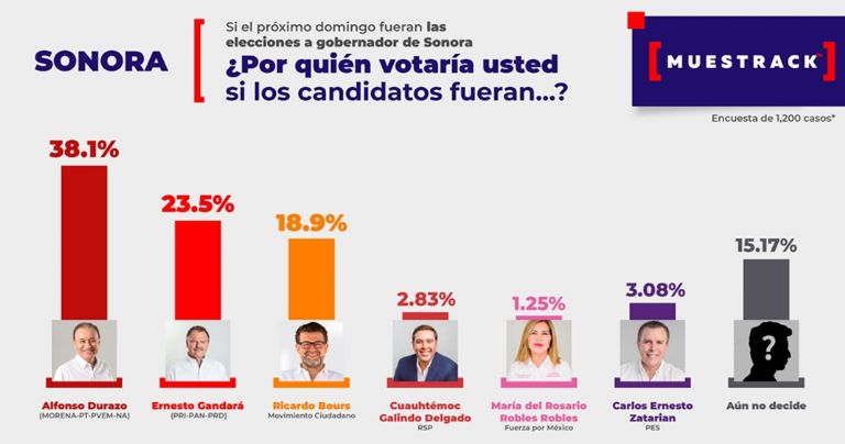 Muestra: de 1,200 casos válidos. 95 por ciento de confianza y error medio de las estimaciones de +- 2.83 por ciento.